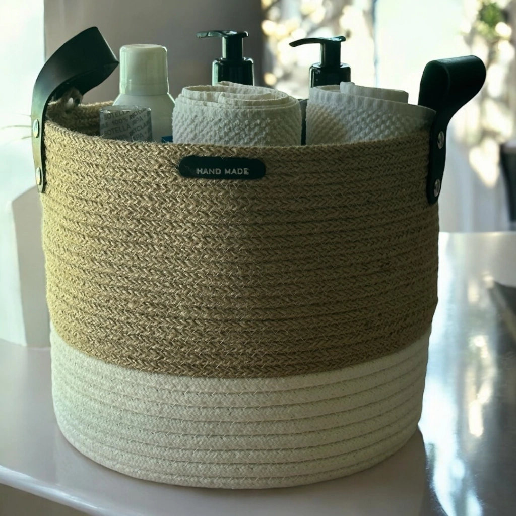 La Cesta Organizadora de 26 cm de diámetro x 22 cm de alto es la solución ideal para mantener tu baño en orden. Perfecta para toallas, champú, talcos y más, ¡no hay más excusas para el desorden! Además, si sos amante de las plantas, esta cesta también puede convertirse en un elegante porta macetas, dándole un toque superior a tu decoración.