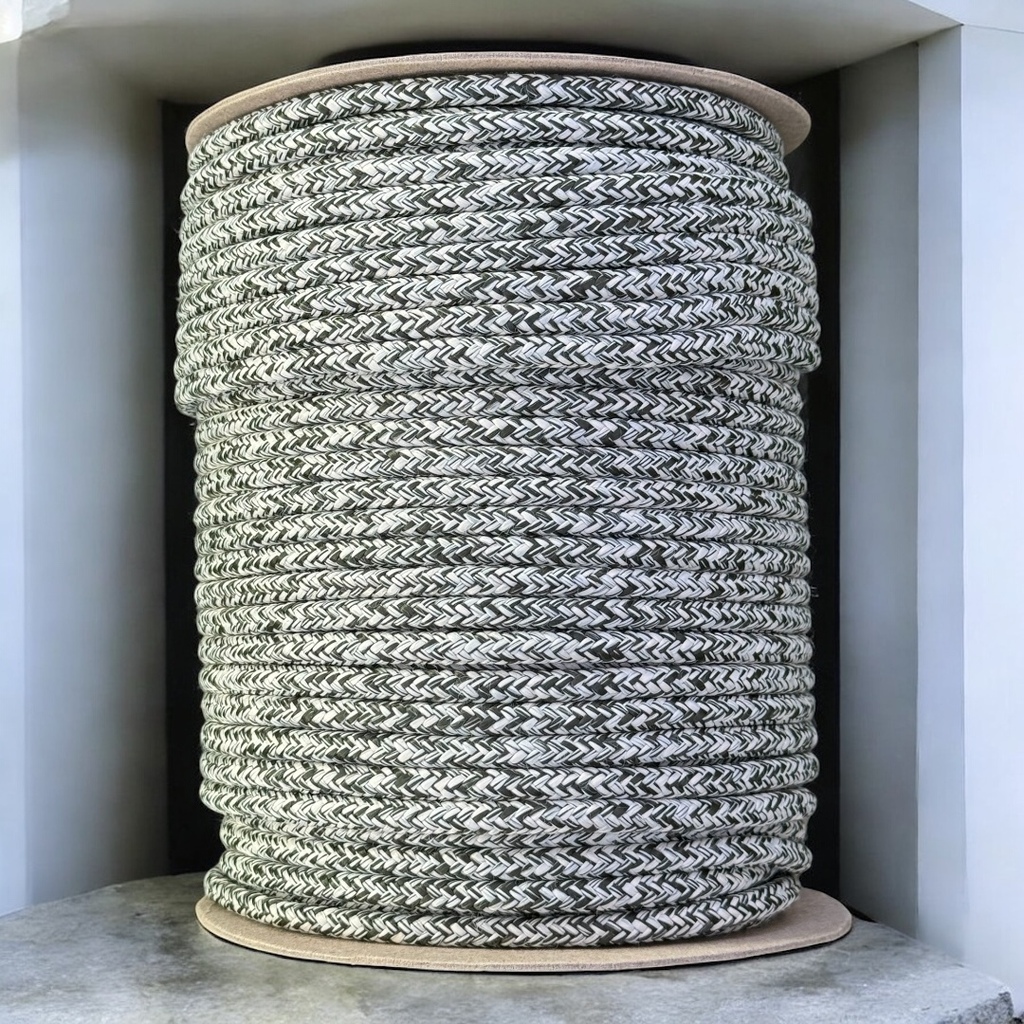 CORDON DE POLIPROPILENO TRENZADO JASPEADO VERDE MILITAR CON CRUDO 7MM CON ALMA PREMIUM - OCEANOAZUL